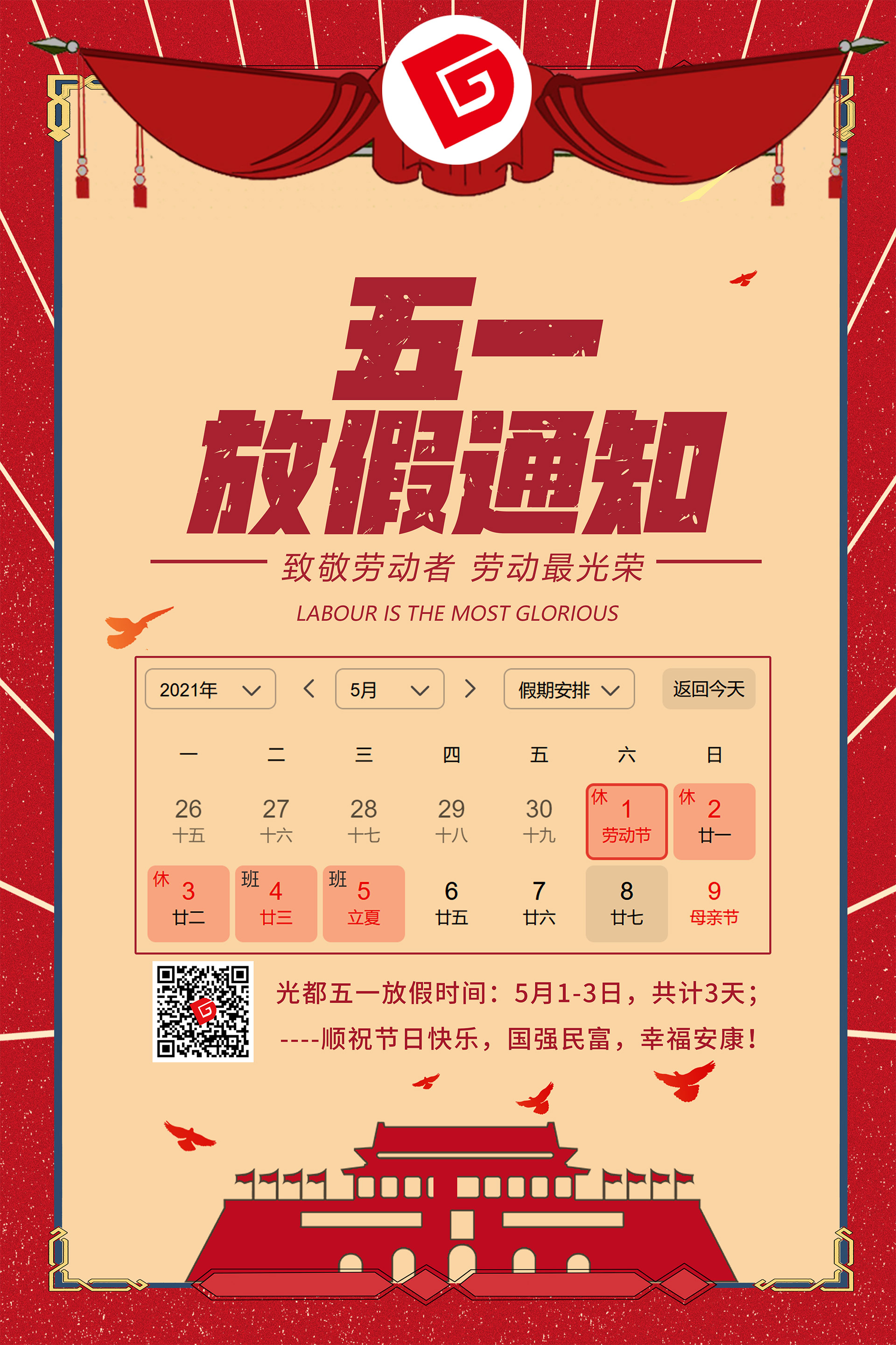 注:國(guó)際勞動節又(yòu)稱“五一(yī)國(guó)際勞動節”(International Workers' Day),是(shì)世界上ε(shàng)100多(duō)個(gè)國(guó)家(jiā)的(de)全國(guó)性節日(rì)。定在每年(nián)的(de)五月(yuè)一(¥yī)日(rì)。它是(shì)全世界勞動人(rén)民(mín)共同擁有(yǒu)的(de)節日(rì)。新中國(guó)π成立以後,中央人(rén)民(mín)政府政務院于1949年(nián)12月(yuè)将5月(yuè)1日(rì)定為(wèi)法定的(de)勞動節,全國(guó)放(fàng)假一( yī)天。每年(nián)的(de)這(zhè)一(yī)天,舉國(guó)歡慶,人(rén)們換上(shàng)節日(rì)的(de)盛裝,興高(gāo)采烈地(dì)聚集在公園、劇(€jù)院、廣場(chǎng),參加各種慶祝集會(huì)或文(wén)體(tǐ)娛樂(yuè)活動,并對(duì)有(yǒu)突出貢獻的(de)勞動者進行(xíng)表δ彰。1999年(nián)9月(yuè)18日(rì),中國(guó)國(guó)務院發布《國(guó)務院關于修改〈全國(guó)年(nián)節及≠紀念日(rì)放(fàng)假辦法〉的(de)決定》,第一(yī)次修訂了(le)1949年(nián)12月(yuè)23日(rì≥)中國(guó)政務院發布的(de)《全國(guó)年(nián)節及紀念日(rì)放(fàng)假辦法》,将每年(nián)春節、“五一(yī)”和(hé)國(guó)慶節法定節日(rì)加上(shàng)調休,全國(guó)放(fàng)假7天,形成了(le)3個 (gè)“黃(huáng)金(jīn)周”。