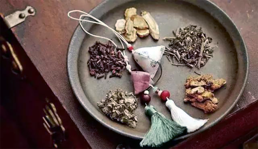 3、配香囊、懸艾草(cǎo)、纏絲符、飲雄黃(huáng):端午節小(xiǎo)孩佩香囊,傳說(shuō)有(yǒu)避邪驅瘟之意,實際是(shì)用(yòng)于襟頭♣點綴裝飾。香囊內(nèi)有(yǒu)朱砂、雄黃(huáng)、香藥,外(wài)包以絲布,清香四溢,再以五色絲線弦∏扣成索,作(zuò)各種不(bù)同形狀,結成一(yī)串,形形色色,小(xiǎo)巧可(kě)愛(ài)™,現(xiàn)已成為(wèi)一(yī)種普遍的(de)工(gōng)藝品。在中國(guó)某些(xiē)南(nán)方城(chéng)市(shì),青年(nián)男π(nán)女(nǚ)還(hái)用(yòng)香囊來(lái)表達濃濃愛(ài)意。