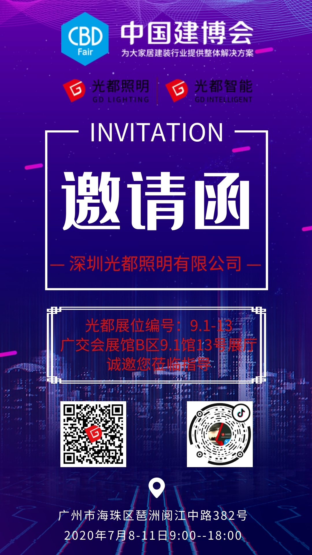 溫馨提示:疫後首秀,冠軍之約!盛夏7月(yuè),光(guāng)都(dōu)2020.7.8-11廣州建博會(huì)為(wèi)您綻放(fàng)!首品首秀,經典力作(zuò),爆款産品,λ業(yè)內(nèi)獨創,解決方案,專利黑(hēi)科(kē)技(jì),創意燈光(guāng),智能(néng)應用(yòng)和(hé)健康照(•zhào)明(míng)等誠邀您莅臨指導,共賞品鑒!還(hái)有(yǒu)現(xiàn)場(chǎng)體(tǐ)驗,精彩互 動,炫酷展廳,底價豪禮哦!