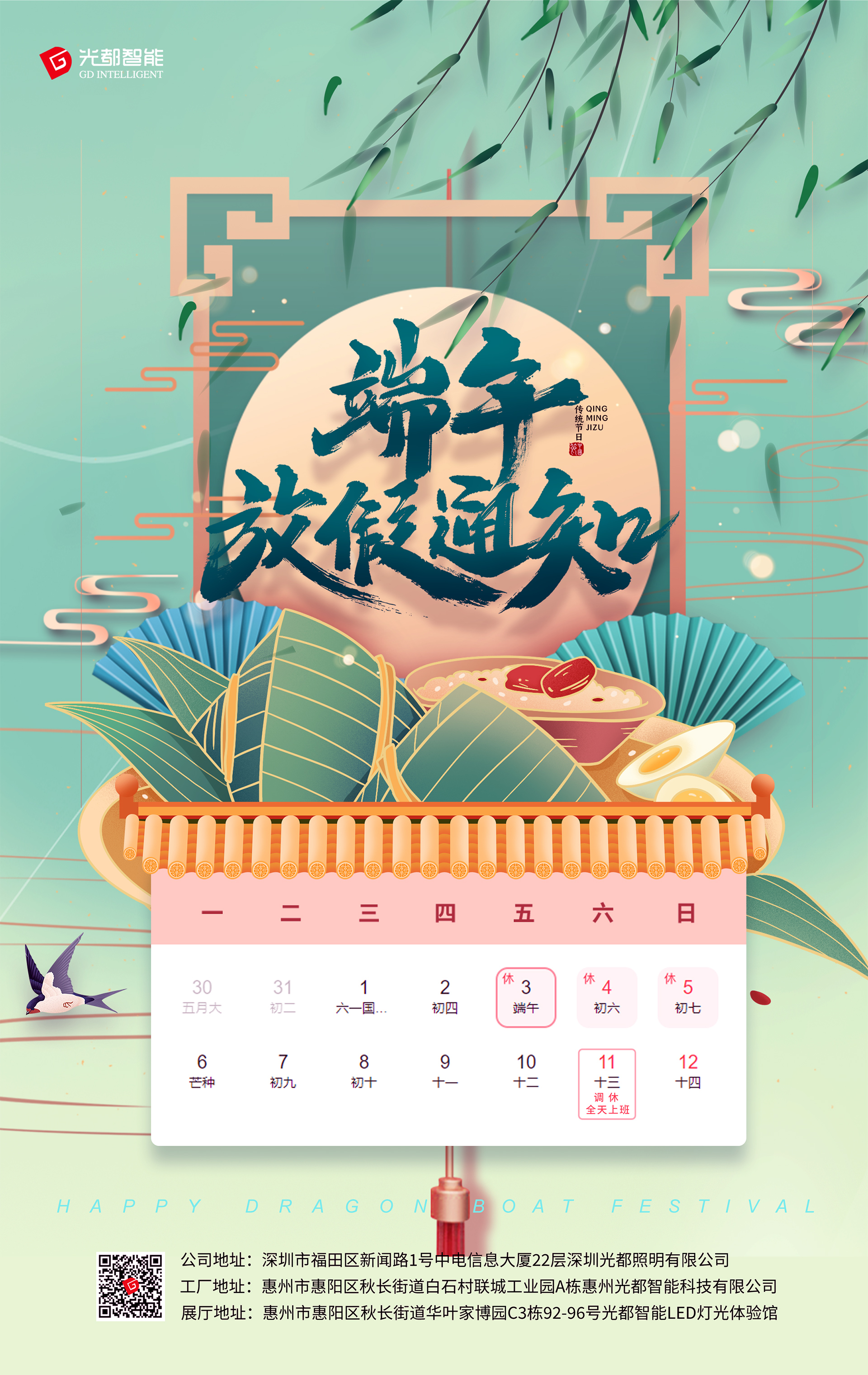 光(guāng)都(dōu)照(zhào)明(míng)|光(guāng)都(dōu)智能(néng)|光(guāng)都(dōu)光(guāng)電(€diàn):端午節放(fàng)假時(shí)間(jiān)為(wèi)6月(yuè)3-5日(rì),6月(yuè)6日(rì)恢複上≤(shàng)班,6月(yuè)11日(rì)周六全天上(shàng)班(節日(rì)調休)。光(guāng)都(dōu)國(guó)內(nèi)營銷中≠心攜全體(tǐ)員(yuán)工(gōng)祝福所有(yǒu)新老(lǎo)夥伴朋(péng)友(yǒu)家(jiā)人(rén)們端午節快(kuài)樂(♣yuè)!粽情粽意!幸福安康!願世間(jiān)美(měi)好(hǎo),接粽而至!勇毅前行(xíng)§,萬粽一(yī)心!乘風(fēng)破浪,不(bù)負粽望!