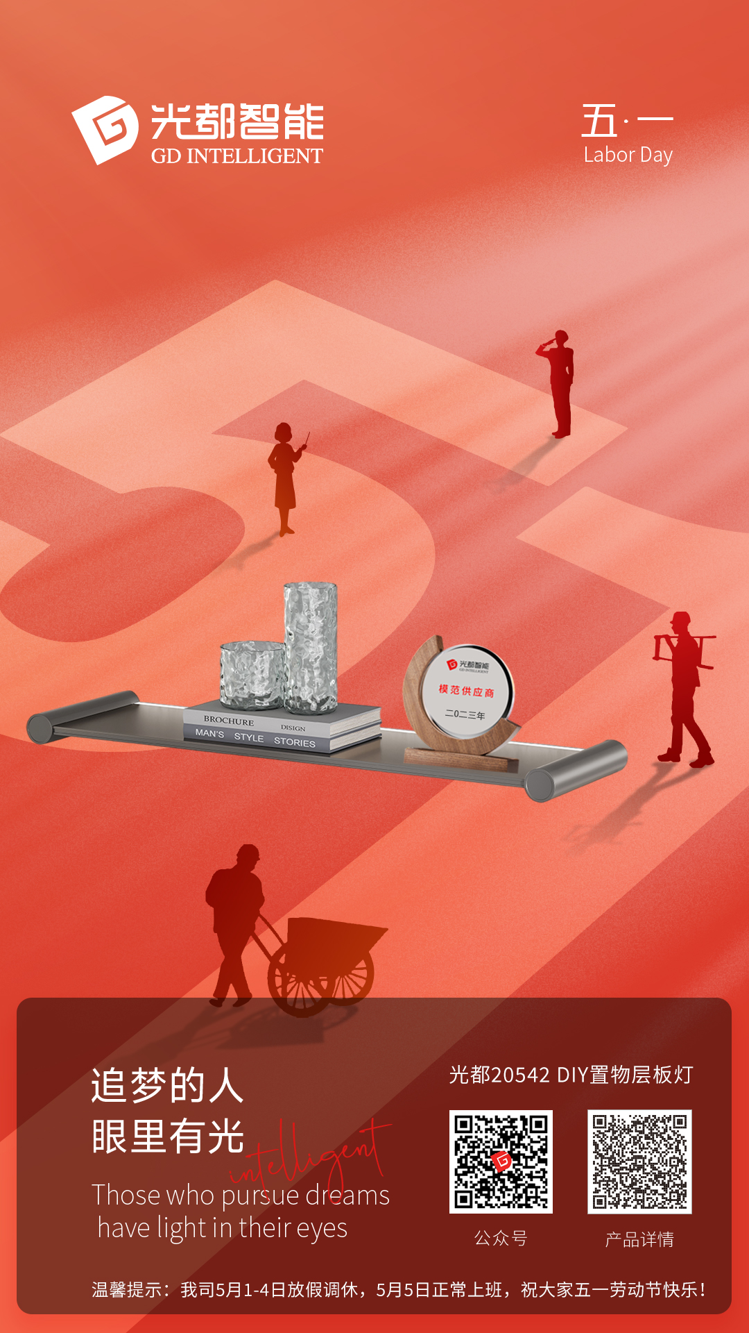 光(guāng)都(dōu)5月(yuè)1-4日(rì)放(fàng)假調休,2024年(nián)5月(yuè)5日(rì)正常上(shà≠ng)班,光(guāng)都(dōu)照(zhào)明(míng)攜光(guāng)都(dōu)智能(néng)和(hé)光(guāng)都(d§ōu)光(guāng)電(diàn)全體(tǐ)同仁祝新老(lǎo)夥伴朋(péng)友(yǒu)家(jiā)人(rén)們五一(yī)勞動節快(kuài)樂(yuè)!