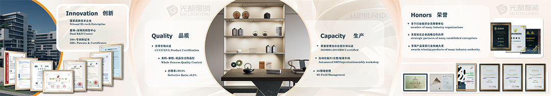 光(guāng)都(dōu)定位為(wèi)藝術(shù)智家(jiā)燈光(guāng)服務商,立足于“定制(zhì)”市(shì)場(chǎng),形成以“定制(zhì)+×”為(wèi)戰略核心的(de)行(xíng)業(yè)生(shēng)态。光(guāng)都(dōu)在☆惠州有(yǒu)2萬多(duō)平生(shēng)産基地(dì),200多(duō)名員(yuán)工(gōng),擁有(yǒu)LED燈光(guāng)和(hé)智能(néng)配件(jiàn)全★産業(yè)鏈,專注家(jiā)居照(zhào)明(míng)21年(nián),自(zì)主方案、自(zì)行(xíng)設計(jì)、自(zì)有(yǒu)工(gōng)廠(chǎng),産品暢銷50多(duō)個(gè)國(guó)家(jiā)和(hé)地(dì♠)區(qū),品質經全球市(shì)場(chǎng)認證,光(guāng)都(dōu)累計(jì)達100多(duō)項專利,200多(duō)份資質證書(shū©),通(tōng)過ISO9001和(hé)BSCI雙認證。