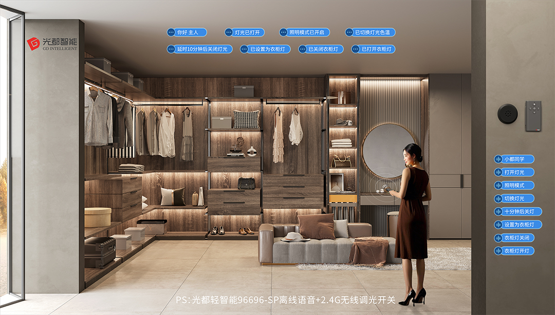 光(guāng)都(dōu)離(lí)線語音(yīn)開(kāi)關SP系列屬于輕智能(néng)家(jiā)居應用(yòng),創新性地(dì)将語音(yīn™)控制(zhì)與有(yǒu)線觸摸調光(guāng)、2.4G無線感應調光(guāng)和(hé)無線∏調光(guāng)調色溫完美(měi)融合,離(lí)線語音(yīn)控制(zhì)無需上(shàng)<網,無需APP,無需對(duì)碼,通(tōng)電(diàn)即用(yòng),控制(zhì)距離≠(lí)≤5M,支持定制(zhì)喚醒詞,支持按場(chǎng)景設置燈光(guāng)名稱,支持集控和(hé)分(fēn)控。該系列産品有(yǒu)三款:離(lí)線語音(yīn)+觸↓摸調光(guāng)開(kāi)關,離(lí)線語音(yīn)+無線感應調光(guāng)開(kāi)關和(hé)離(lí)線語音(yīn)調光(guāng)調色溫開(kāi)關,≥讓用(yòng)戶解放(fàng)雙手,随心掌控,少(shǎo)量的(de)成本增加,享受到(dào)便捷的(de)智能(néng)燈光(guāng)體(tǐ)驗,極大(dà)地(dì)豐富了¶(le)櫃燈的(de)呈現(xiàn),提升客戶的(de)競争力。